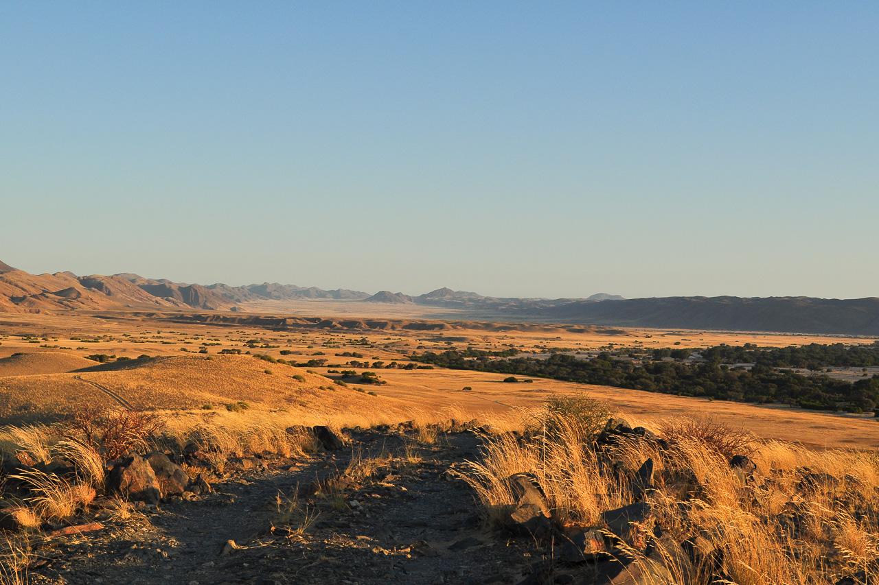 Das Hartmanntal verläuft über weite Strecken parallel zur Küste und bildet das Eingangstor zu Serra Cafema. Das Flugfeld wurde auf dieser Hochebene gebaut, von hier fällt die Strasse zum Teil steil (und mit überraschung) zum Fluss hinab. Die Umgebung ist eine wirklich tolle Kombination von Sanddünen, schroffen Felsen und weiten Grasebenen im Hartmanntal, gesäumt von sanften Hügeln und gesprenkelt mit Feenkreisen, den sogenannten 'fairy circles'.