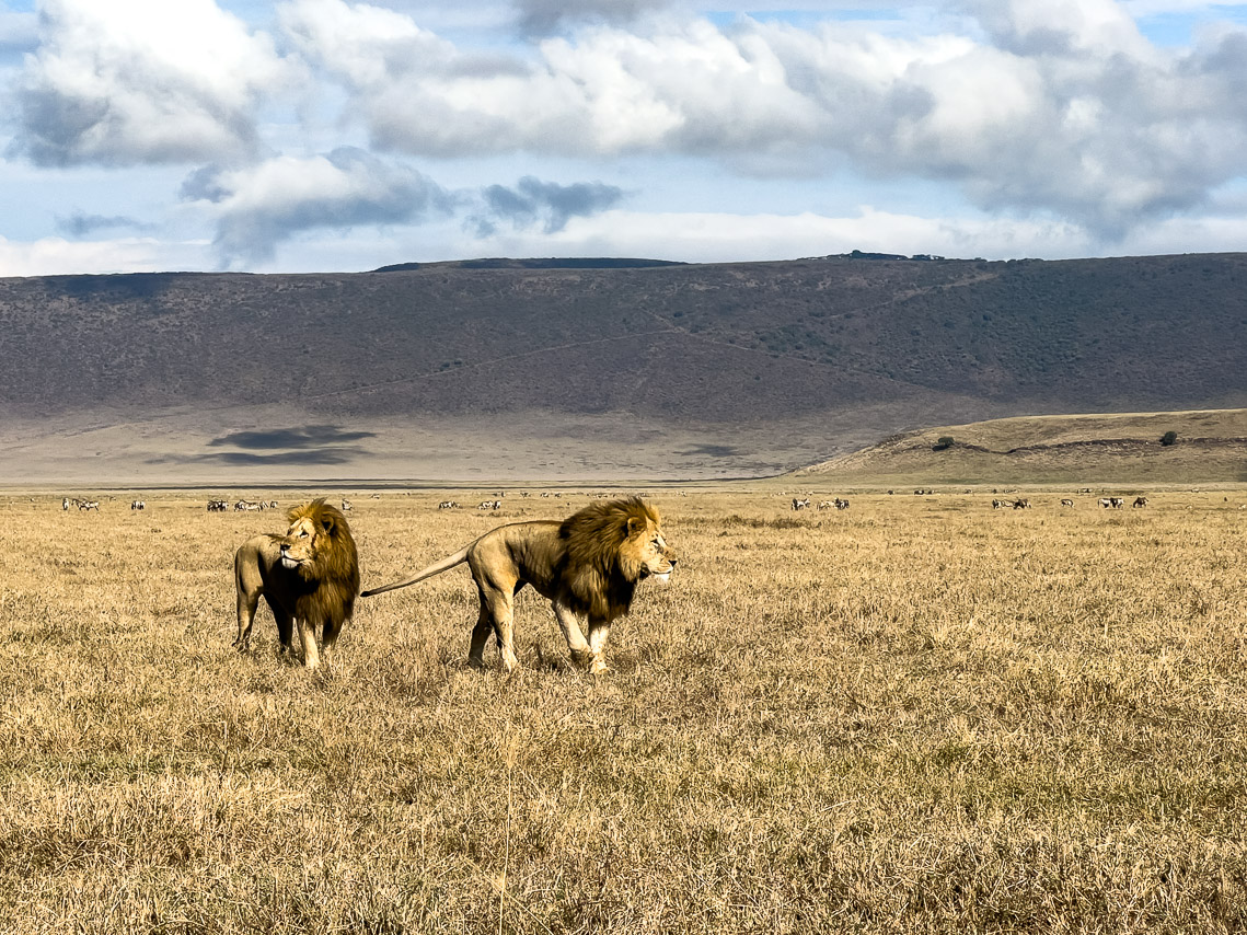 Der Ngorongoro Krater ist der grösste nicht überflutete Kraterkessel (Kaldera) der Welt mit einem Durchmesser von 19 Kilometern und 600 Meter hohen Wänden. Der Kraterboden umfasst etwa 260 km² und bietet Nahrung für eine grosse Anzahl Tiere, die permanent dort leben.