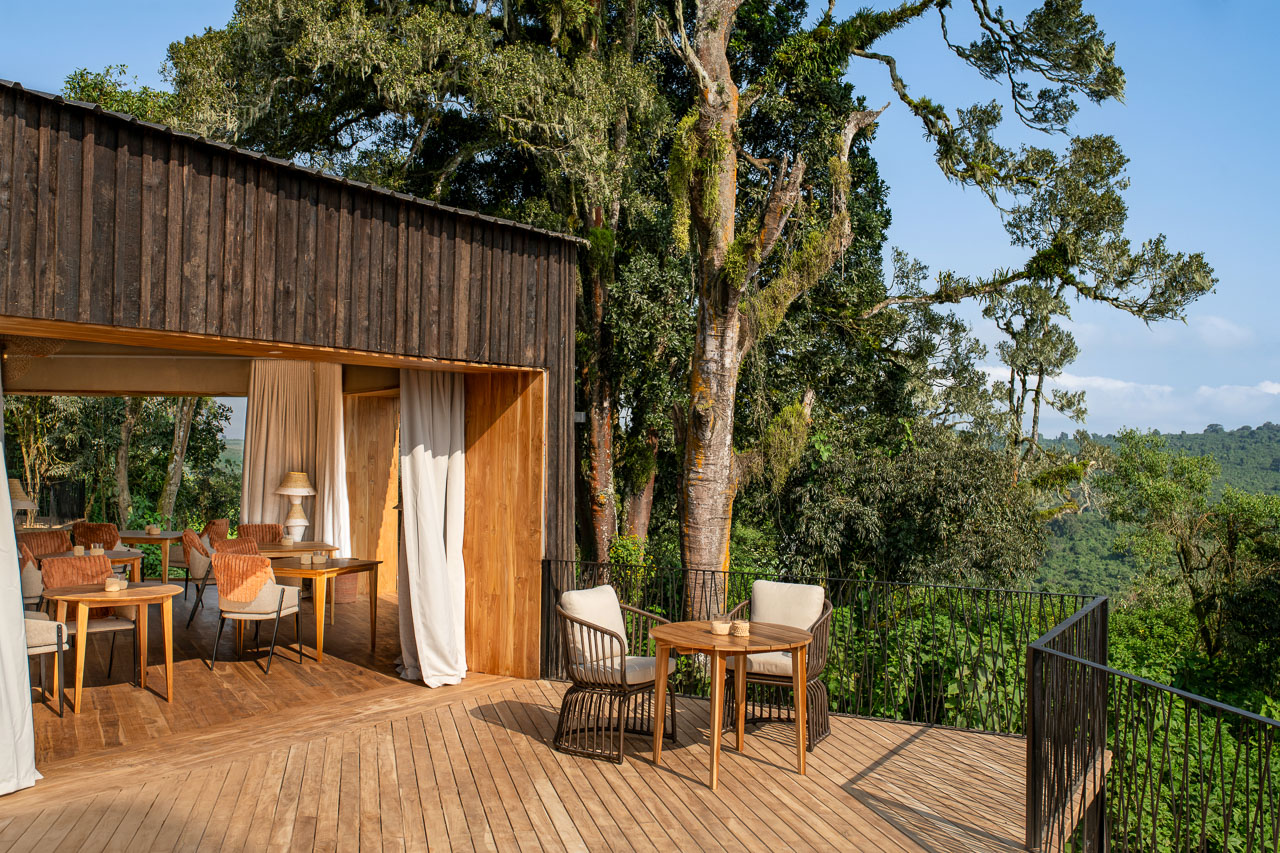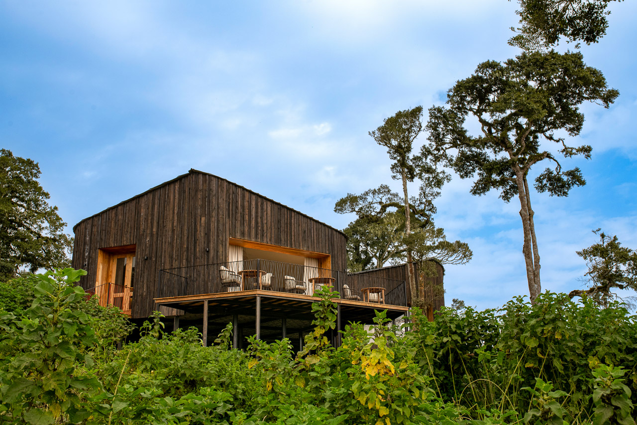 Die Gäste erreichen das Hauptgebäude über ebenerdige Pfade, die sich durch dichten Regenwald schlängeln. Es stehen zwei Essbereiche zur Verfügung, verschiedene Lounges und eine Aussenterrasse mit vorgelagerter Feuerstelle. Etwas weiter unten befindet sich in einem separaten Gebäude ein geheizter Indoor-Pool, wo ein Bad im warmen Wasser nach einem langen Tag im Fahrzeug die Sinne wiederbelebt.