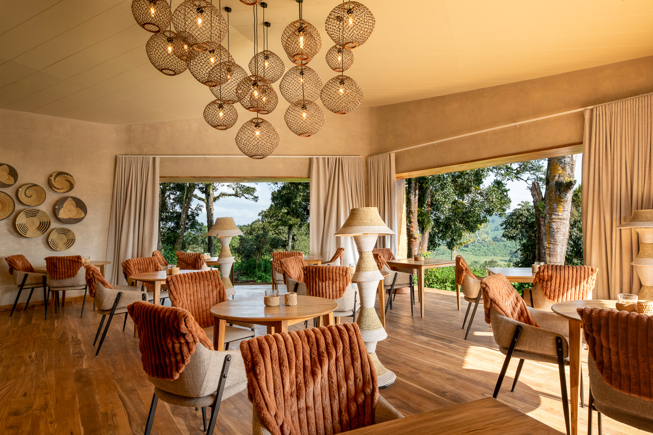 Hölzerne Stege verbinden die Zimmer mit dem Hauptgebäude, das von einem mächtigen Strohdach bedeckt ist. Hier befindet sich die Lounge mit Feuerstelle, der Essbereich, die Bar und eine Bibliothek. Vor der Lodge wurde ein schöner Pool gebaut, von wo aus man herrliche Sicht über die Serengeti und die darunter liegende Schlucht geniesst.