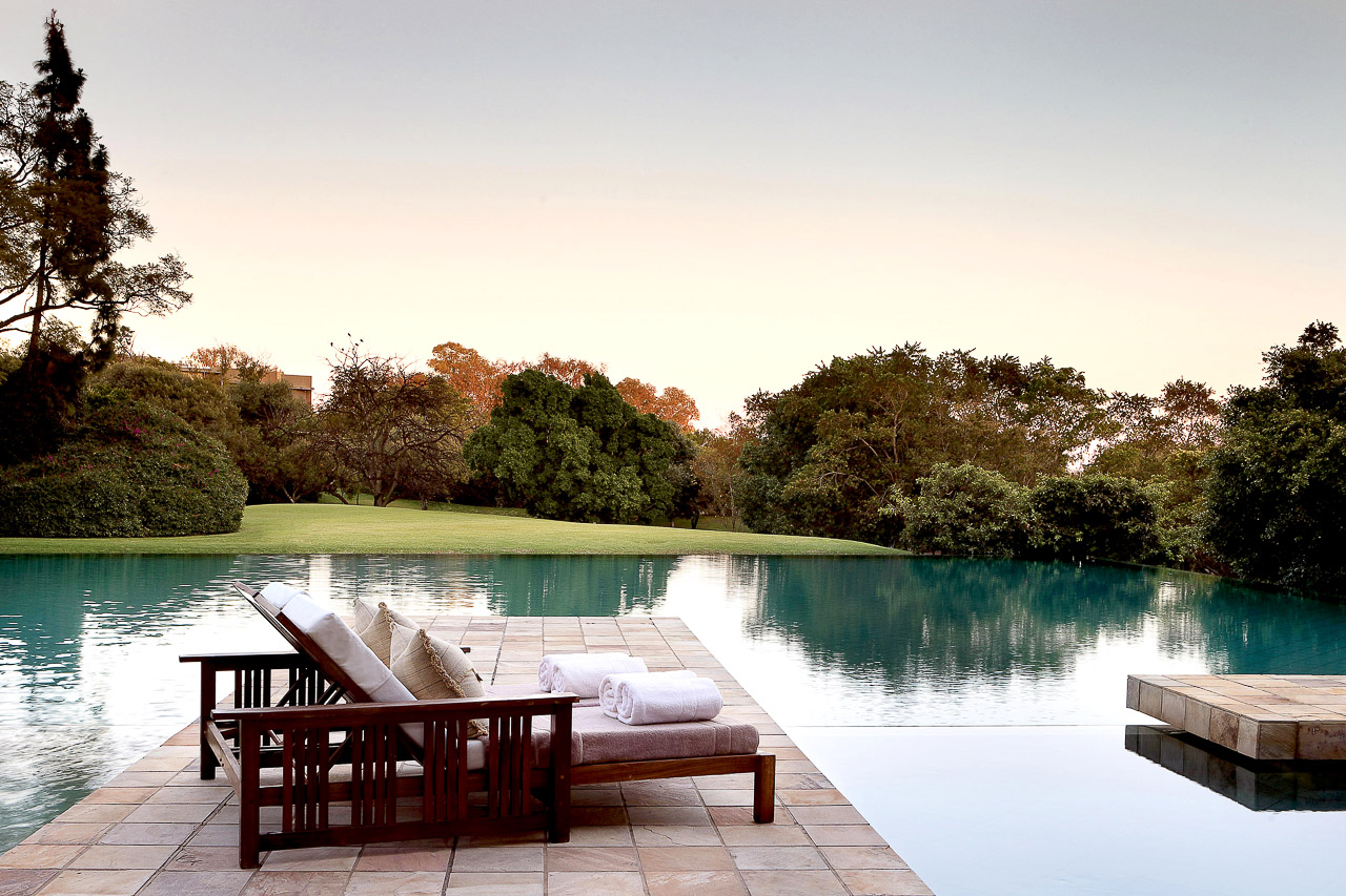 Spa, Fitnesscenter, Swimming-Pool befinden sich im obersten Stockwerk mit Aussicht über Johannesburg.